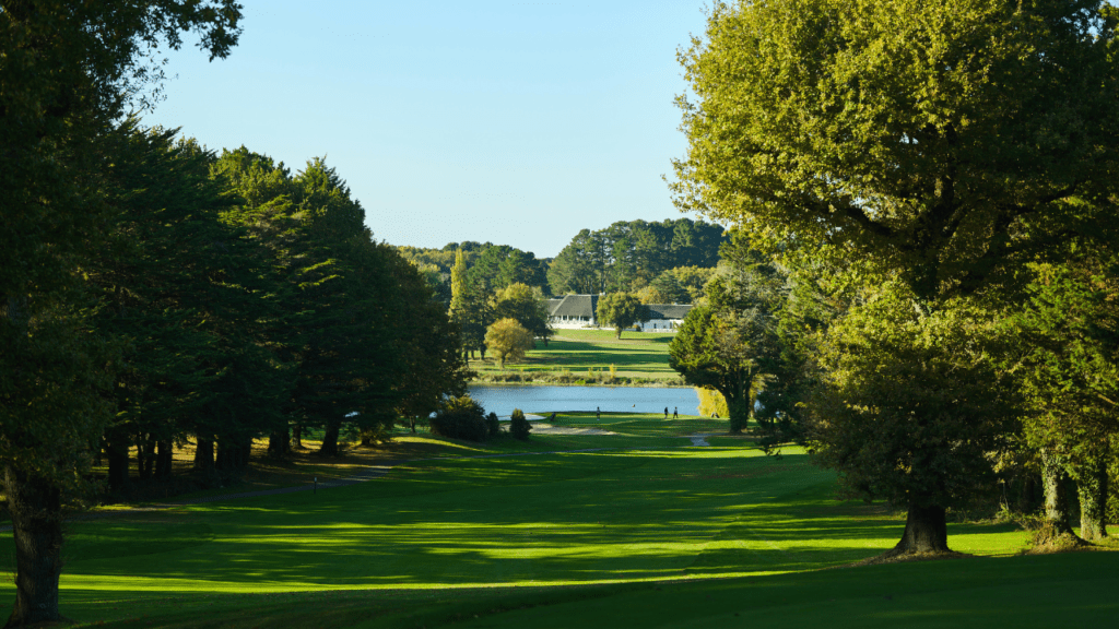 Dès l’aube, le parcours s’éveille doucement : la brume se glisse entre les chênes, les greens luisent d’humidité, et le son d’un drive résonne comme un écho dans l’air frais du matin.