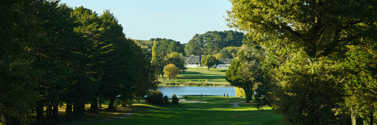 Midi, le soleil s’installe. Les lumières de Loire-Atlantique révèlent l’ensemble du terrain et font vibrer les couleurs du parcours : le vert dense des fairways, les bunkers dorés, le bleu du lac.